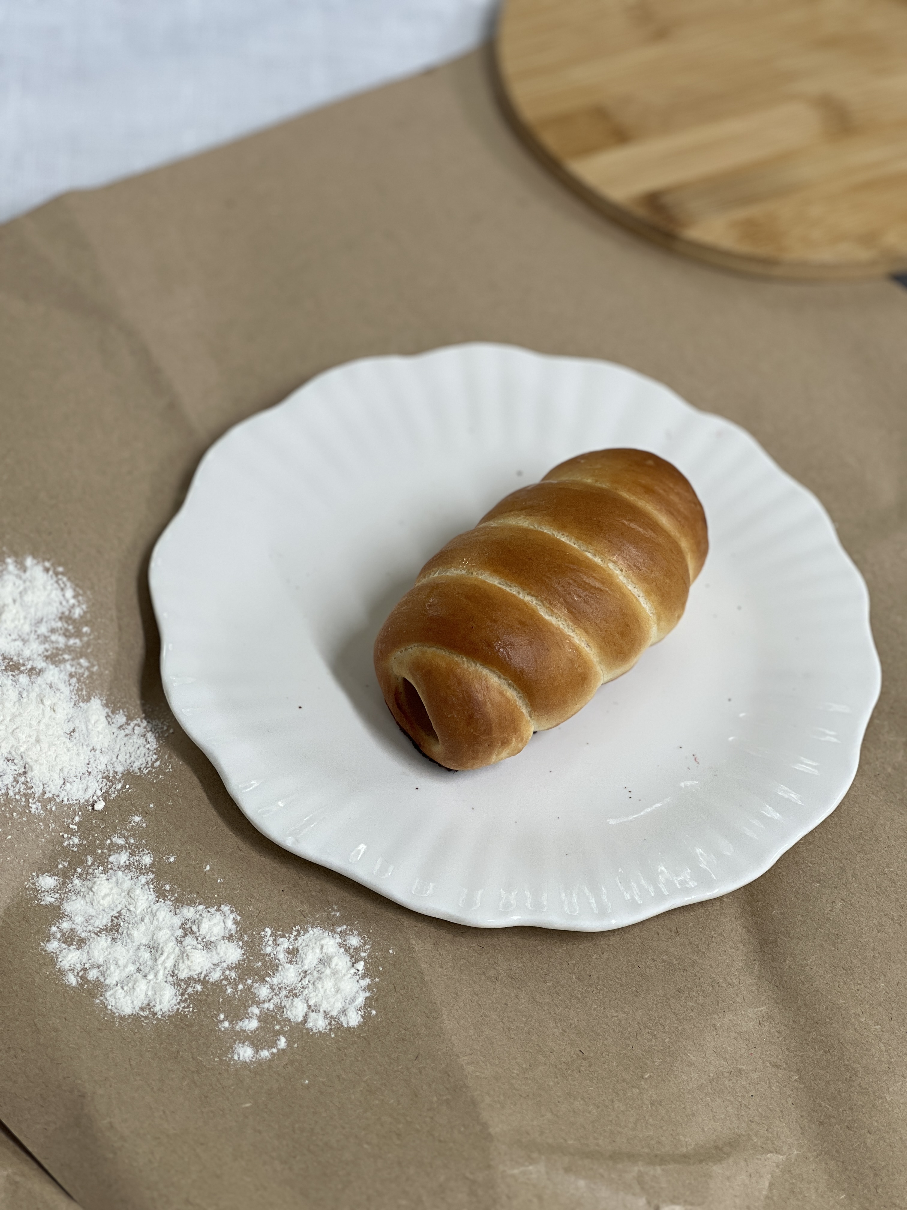 Состав: мука в/с, вода, сахар, соль, маргарин, масло подсол., дрожжи хлебопекарные, яйцо куриное, колбасный продукт сосиска подкопченая.